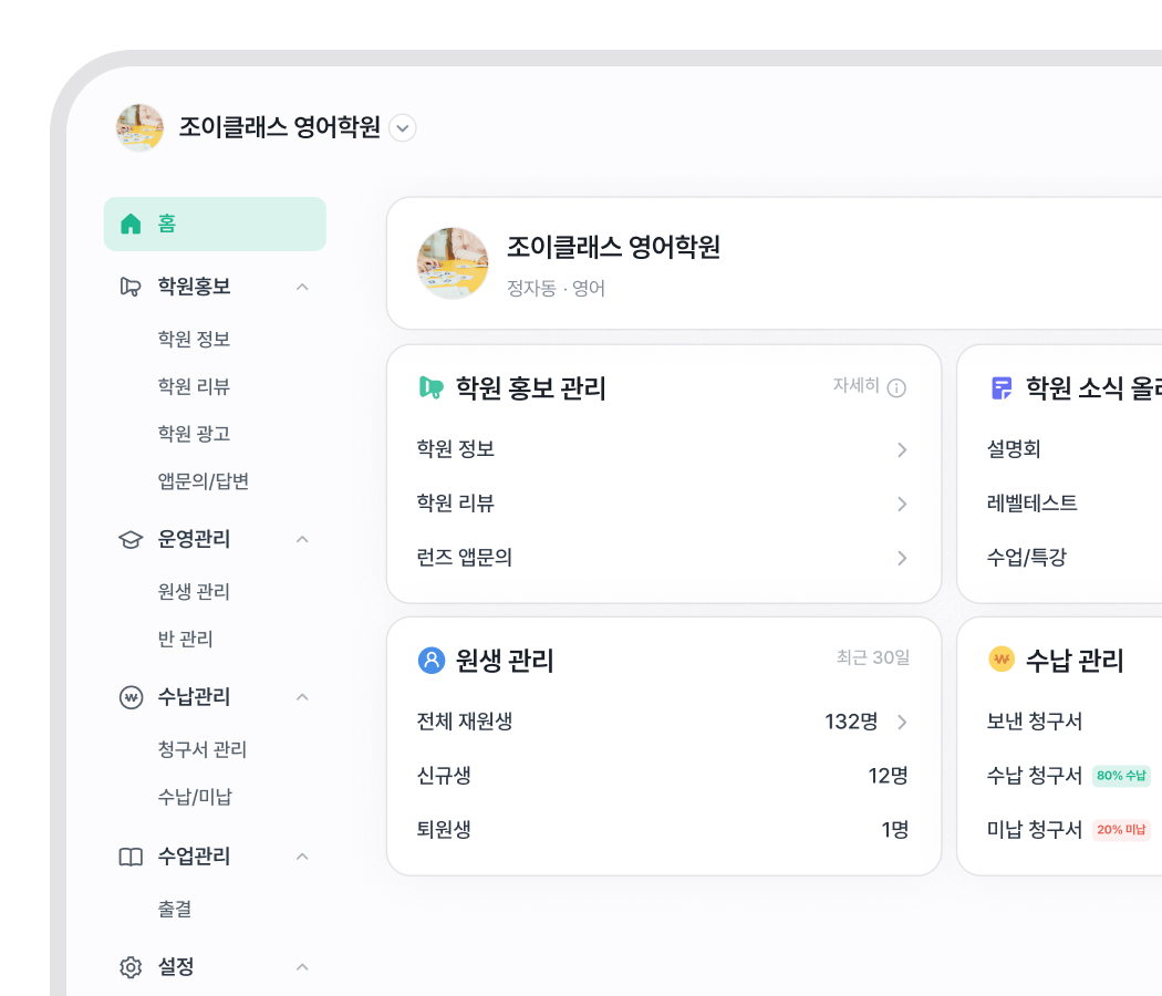 *학원 오픈 준비 중이시라면 고객센터로 연락 주세요.