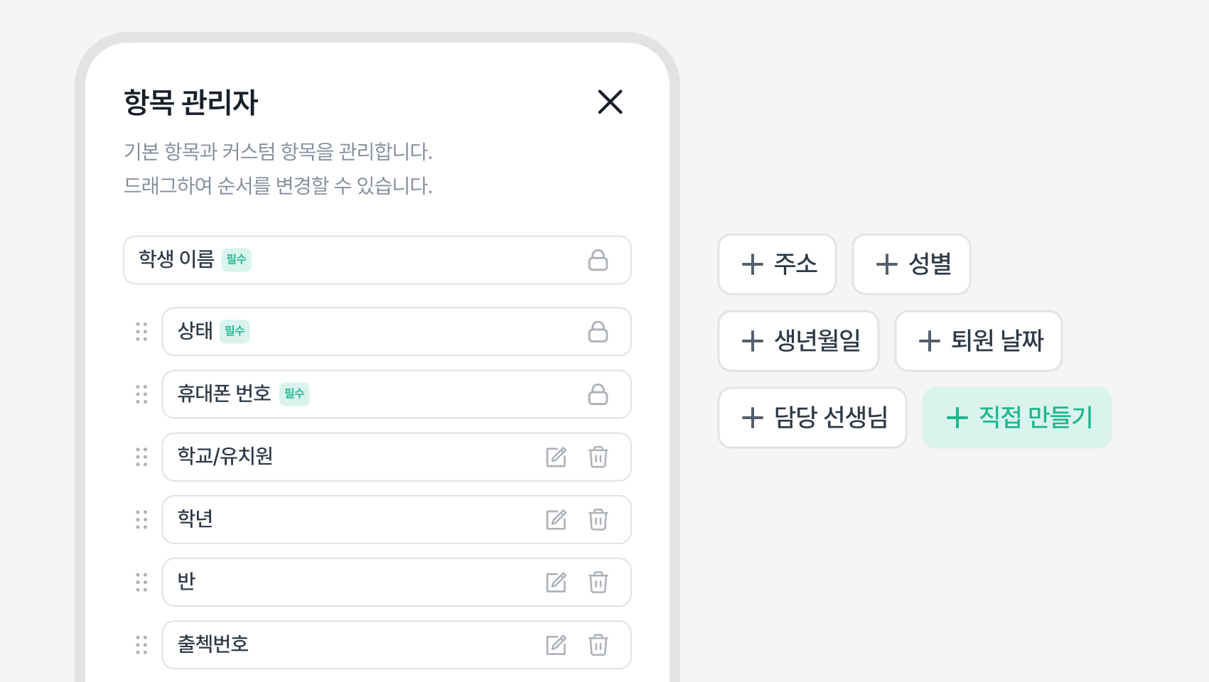 기본 기능 외에도 학습관리 시스템(LMS), 가맹점 관리, 브랜딩 홈페이지 구축 등 학원 운영에 특화된 전용 시스템이 필요하신 경우, 합리적인 범위 내에서 맞춤형 기능 개발을 지원해드립니다.